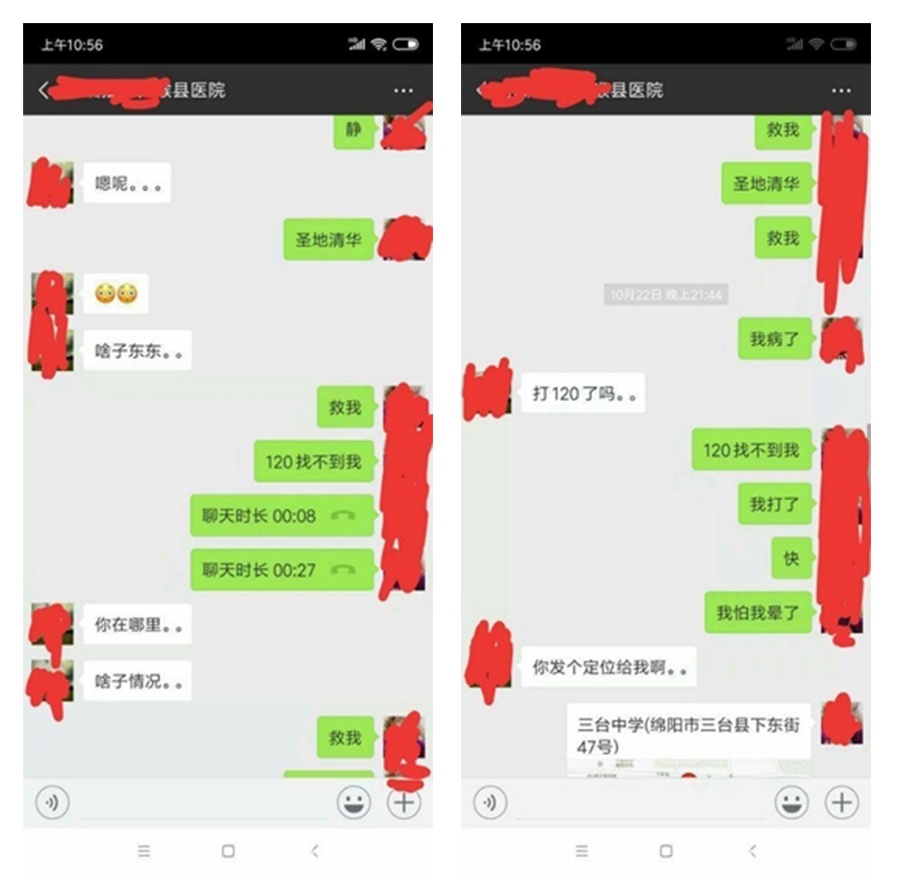 发作,拨打120后无法说清地址,转而微信求助于他。