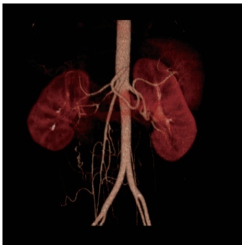 病史摘要:患者为 21 岁女性,1 天前因头晕测血压发现重度升高,无其他不适。1 个月前有上呼吸道感染症状,后出现颌下淋巴结肿大。既往体健,无慢性疾病、传染病、手术外伤等病史,月经规律。家族中外祖母有高血压,否认一级亲属高血压及其他遗传性疾病史。 诊疗过程:入院查体无明显异常体征。辅助检查提示血钾低,醛固酮、肾素活性增高,尿蛋白微量。肾脏、肾上腺等超声部分未见明显异常,眼底为 I