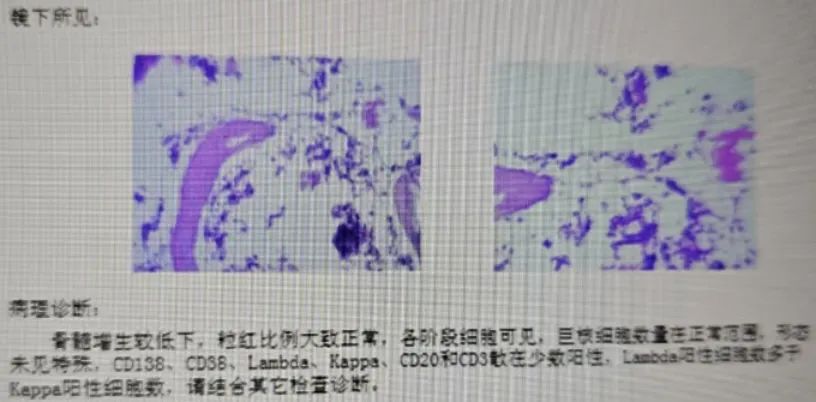 病史摘要:76 岁男性患者,主因“眼睑及四肢水肿 1 年余”入院。1 年余前无诱因出现上述症状,伴泡沫尿,当地治疗无效。半年前出现尿频。既往有陈旧性脑梗死、高血压、高脂血症、高尿酸血症、腰椎椎管狭窄病史,有 50 年吸烟史。诊疗过程:入院查体生命体征平稳,无明显阳性体征。化验提示多项指标异常,血免疫固定电泳见 M 蛋白等。影像学检查发现多器官病变。肾穿刺病理诊断为膜增生样肾小球肾炎