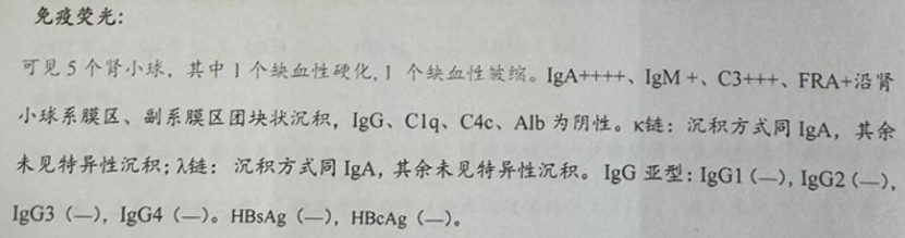 诊疗过程:体格检查发现患者血压正常。实验室检查显示UPC持续异常,血清补体水平正常,抗核抗体、抗双链DNA抗体阴性。肾脏超声未见