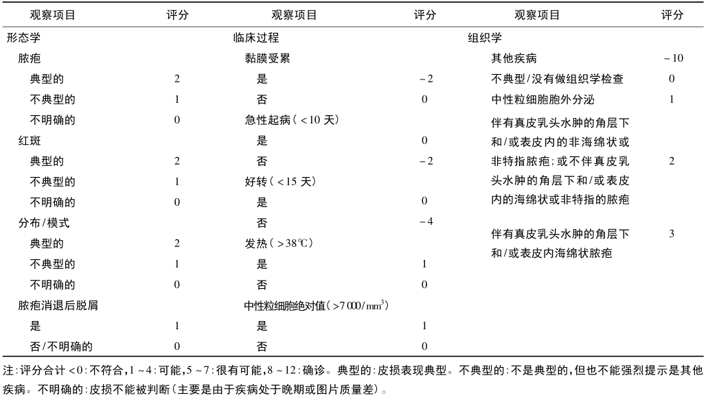 病史摘要:45岁女性,既往体健,无相关家族史与过敏史。因轻度瘙痒性皮疹急性发作2天就诊,皮疹始于腋窝和腹股沟后扩散,患者随后发热。4天前确诊肺炎并开始服用阿奇霉素。诊疗过程:查体体温38.9°C,左肺下野有湿啰音,皮损基底红斑覆数百非滤泡性脓疱。实验室检查白细胞等多项指标升高,血培养肺炎支原体阳性,脓疱培养阴性。腿部脓疱穿刺活检有特定组织学表现。综合判断为阿奇霉素诱导的急性泛发性发