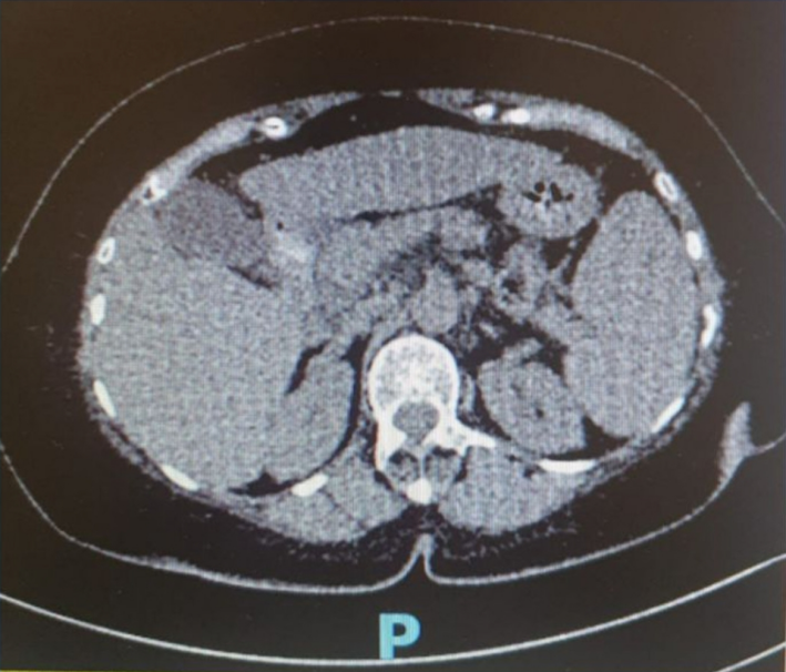 病史摘要:56岁男性患者,因“乏力、腹痛、腹胀、食欲减退和体重下降2个月”就诊。否认吸烟、饮酒史,既往病史和家族史无特殊。