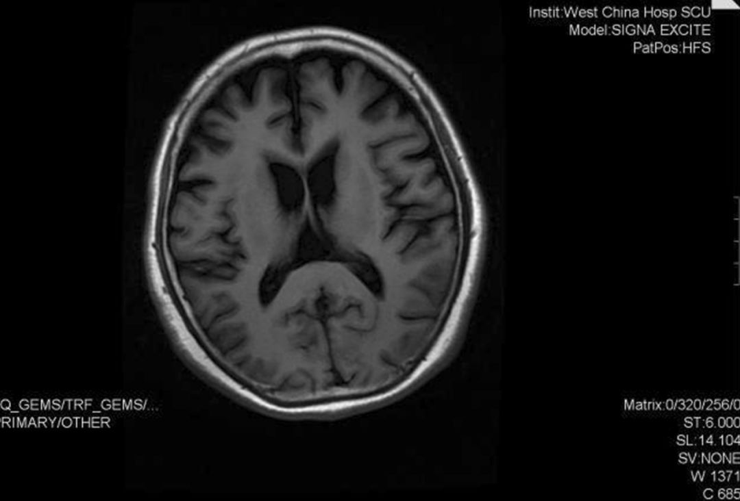 图2 2018年9月头部MRI示轻度额颞叶萎缩(Li X, et al. 2020)