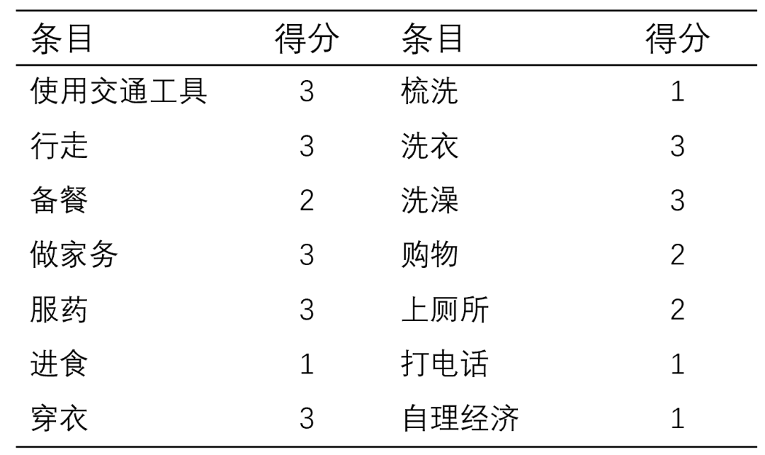表1 2019年8月患者ADL得分(Li X, et al. 2020)