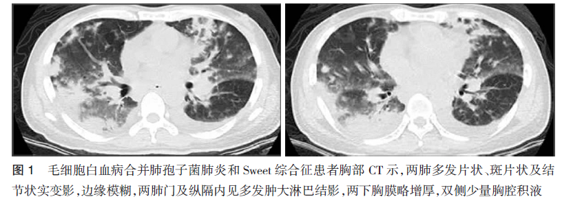 毛细胞白血病合并肺孢子菌肺炎和Sweet综合征一例