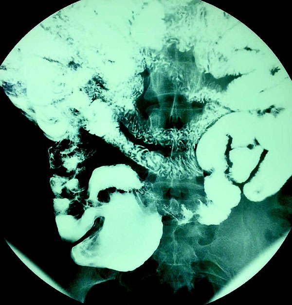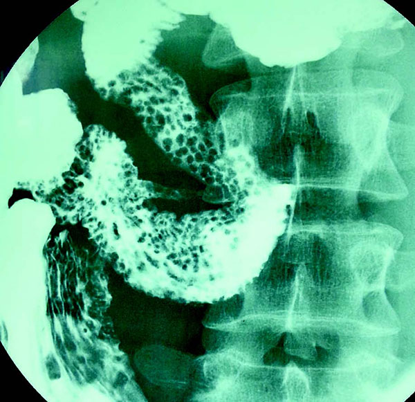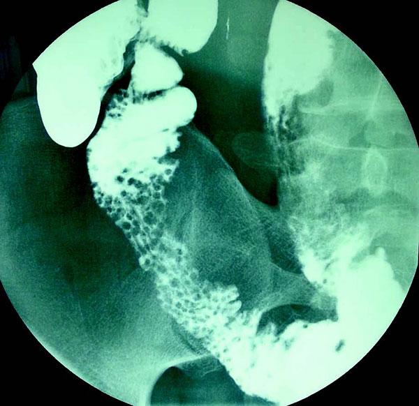 患者男,32岁。12岁时被诊断为复发性鼻窦炎、支气管炎和扁桃体炎。患者自述腹泻2周余。影像学示结节性淋巴组织增生: