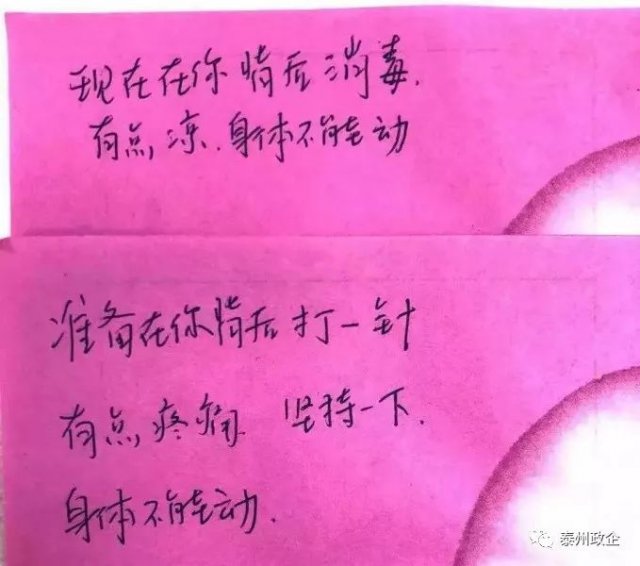 @泰州政企 10月25日,江苏泰州四院的麻醉师童江荣,在手术室中通过纸笔,与47岁的聋哑手术病人“对话”: