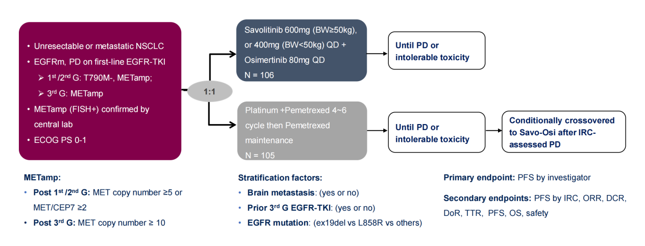 3. Lu S, Wang J, Yang N, et al. Savolitinib (Savo) combined with osimertinib (osi) versus chemotherapy (chemo) in EGFR-mutant (EGFRm) and MET-amplification (METamp) advanced NSCLC after disease progression (PD) on EGFR tyrosine kinase inhibitor (TKI): Results from a randomized phase 3 SACHI study. 2025 ASCO. LBA8505.