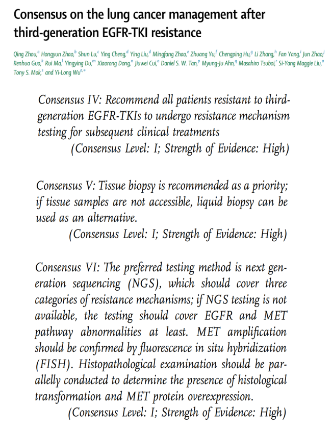 图4 第三代EGFR-TKI获得性耐药管理的亚太专家共识5