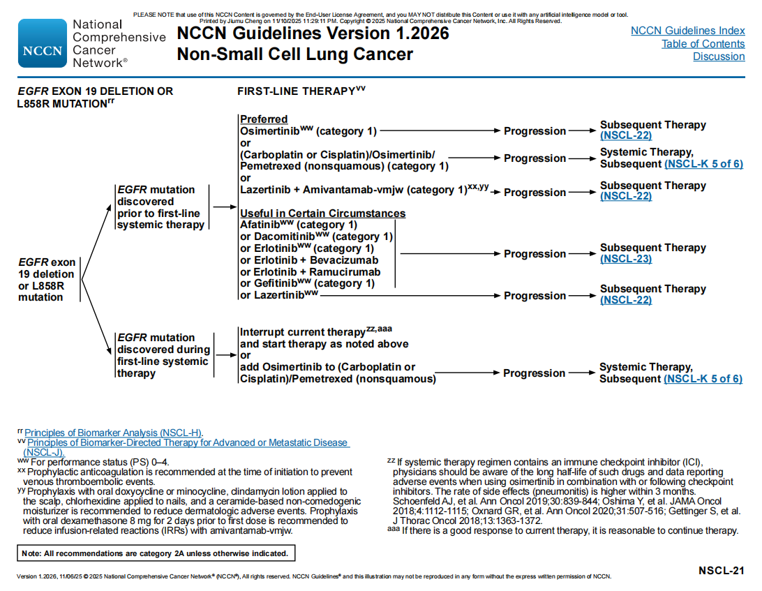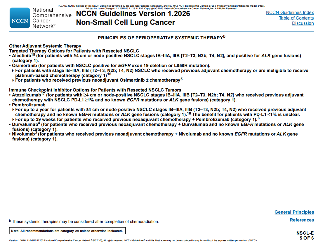 [1] NCCN Clinical Practice Guidelines in Oncology (NCCN Guidelines®). Non Small Cell Lung Cancer. Version 1. 2026.