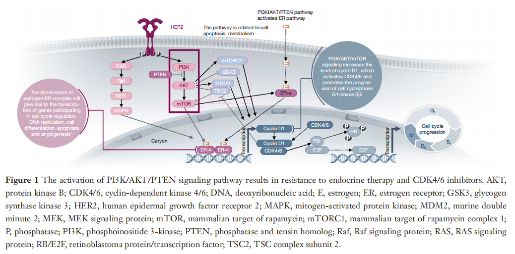 蛋白同源物(PTEN)通路的异常激活作为引起CDK4/6i耐药的关键机制之一,与不良预后相关,可作为HR+/HER2-乳腺癌精准诊疗的重要研究靶点。