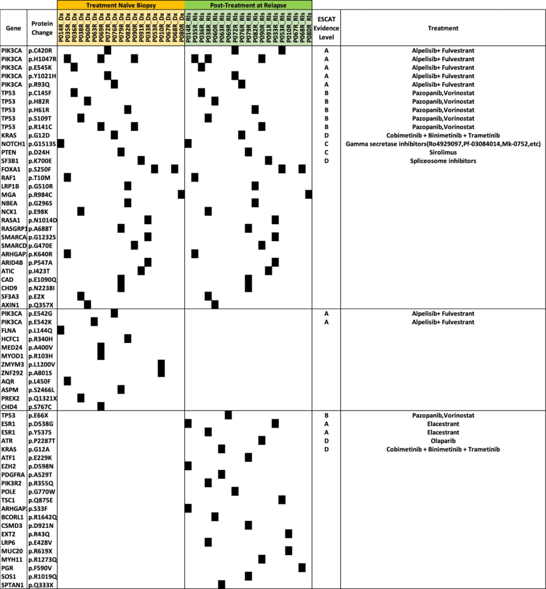 图2. ESCAT分析确定的19例内分泌治疗耐药患者的可靶向驱动突变[2]