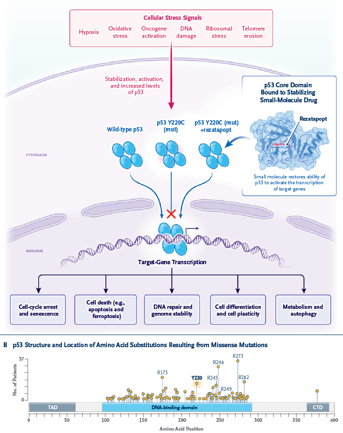 [1] Lu X. Restoring Function to a Variant of p53 in Solid Tumors. N Engl J Med. 2026;394(9):922-925.