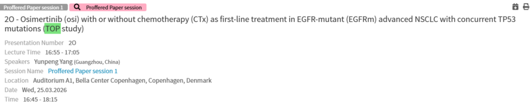 [15] Yunpeng Yang, et al. TOP:A phaseIII,multicentre,randomized controlled study comparing Osimertinib in combination with carboplatin and pemetrexed to osimertinib monotherapy for untreated patients with advanced non-squamous (Non-sq) non-small cell lung cancer (NSCLC) with concurrent EGFR and TP53 mutations. 2025ASCO. TPS8662.