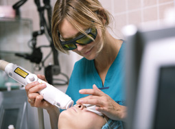 (30-60 mg/d),随后口服异维甲酸治疗。非损伤性激光疗法治疗红斑痤疮非常有效。持久性毛细血管扩张症可通过电外科或585-nm脉冲染料激光治疗。