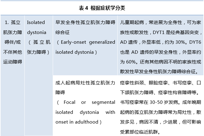 于是,根据症状学,重新将肌张力障碍分为孤立肌张力障碍伴/或不伴其他运动障碍,以及肌张力障碍合并其他神经系统或其他系统受累表现。前者又包括孤立肌张力障碍(Isolated dystonia)和混合性肌张力障碍(Combined dystonia)。