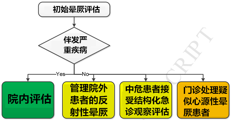 3.初始评估过程中晕厥患者出现可能与晕厥相关的严重疾病时,推荐至医院接受评估和治疗(I级推荐);