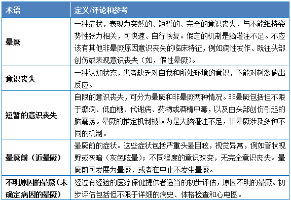 表1 晕厥相关术语和定义