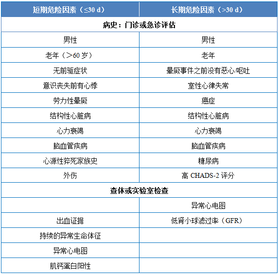 表3 晕厥的短期和长期危险因素