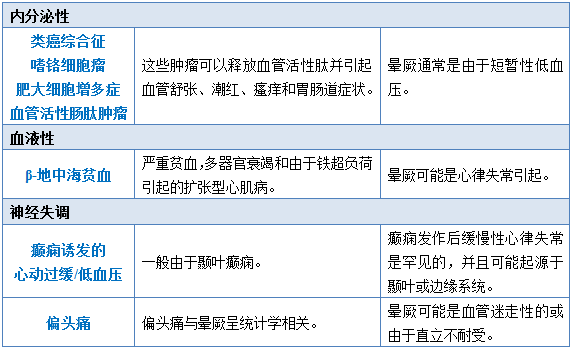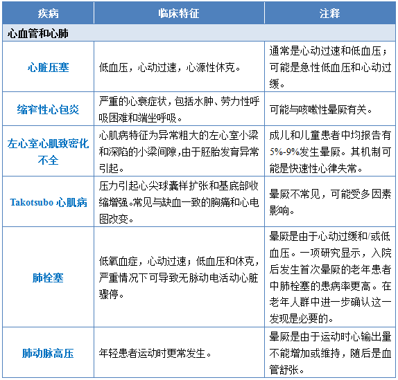 表5 与晕厥相关的不常见疾病