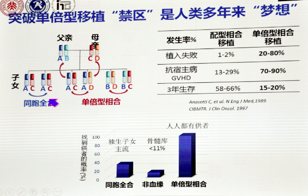 单倍体造血干细胞移植是目前全球都在推动发展的移植技术,它可以作为替代性供者解决很多临床实际问题。我国在HLA不合移植技术方面,近年来取得重大进展,开创了单倍型移植的新方法。