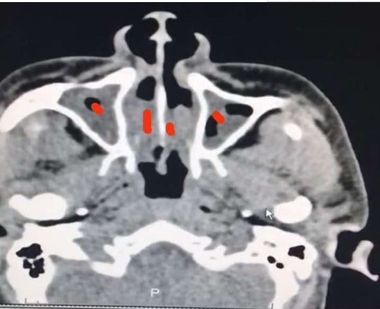 ”行鼻窦CT示:慢性鼻炎-鼻窦炎