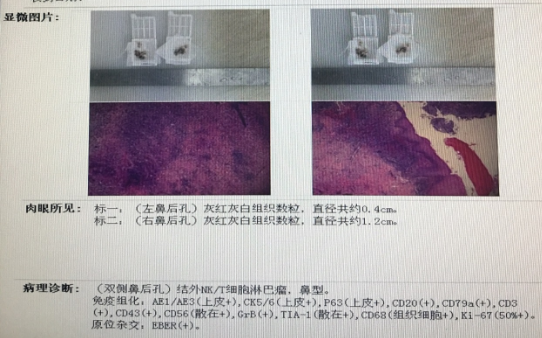 ">T细胞淋巴瘤,鼻型(图2)。诊断明确后转肿瘤科继续治疗。