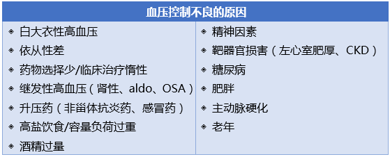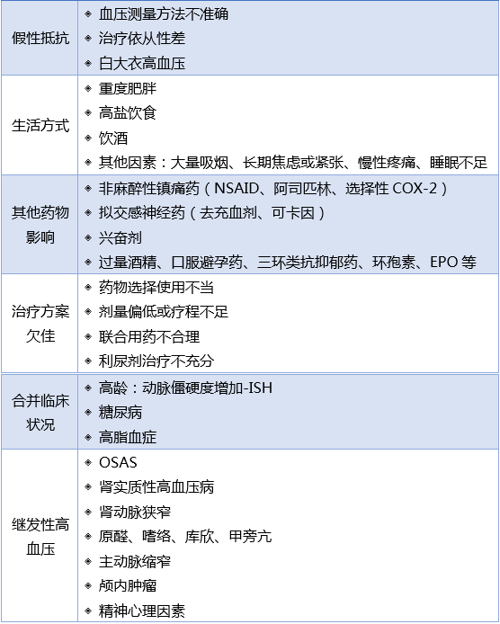 以及难治性高血压的患者。而难治性高血压是指即使服用足量≥3种不同类别降压药(应包含一种利尿剂),血压仍高于控制目标的患者(治疗计划必须考虑生活方式干预),此外还包括实现血压良好控制但服用≥4种降压药的患者。