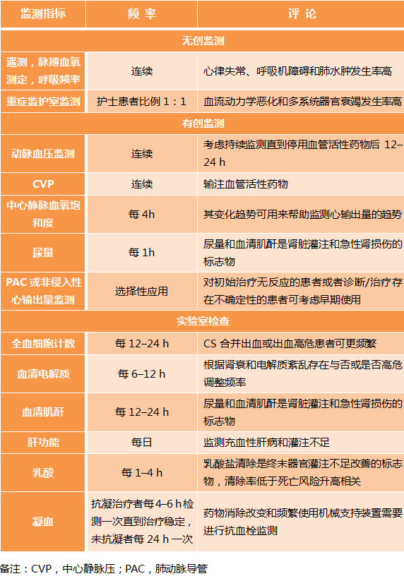 表2 CS患者的监测和实验室检查