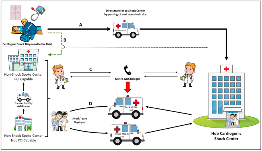声明在心源性休克的救治和管理方面提出了详细的建议,包括区域医护体系和管理流程等。心源性休克病例数多的医院院内死亡率较低。声明建议,心源性休克患者可集中到这些医院进行救治和管理;这些医院应该建立救治系统,与当地紧急医疗系统整合,起到辐射作用,以改善患者预后。