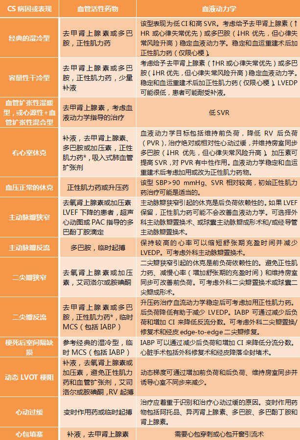 表4 不同类型CS的初始血管活性药物使用注意事项