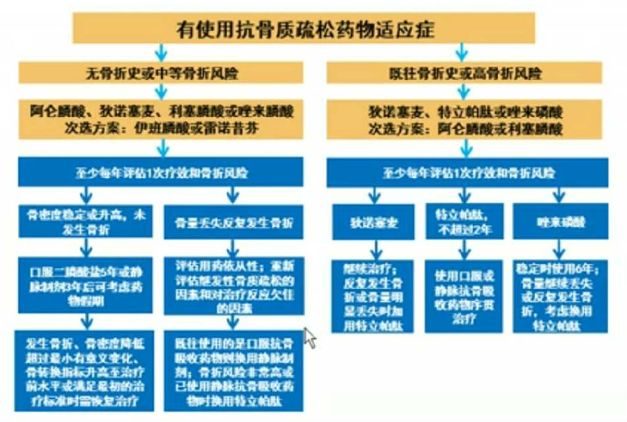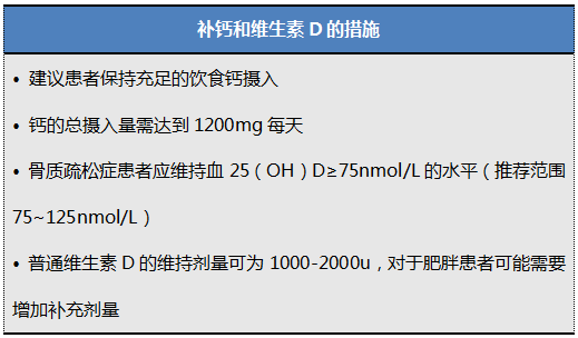 糖尿病患者骨质疏松症的治疗和原发性骨质疏松症的治疗原则一致。生活方式干预措施包括:饮食+适量运动;避免跌倒(药物检查、视力