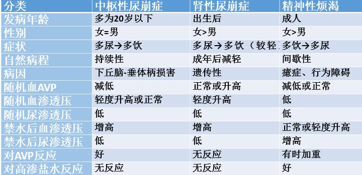 (2)中枢性尿崩症、肾性尿崩症与精神性烦渴