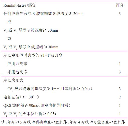 如上所述,在体表测量的QRS波振幅受多种因素的影响。所以,即使不符合QRS振幅标准,也可能有LVH。这是Romhilt-Estes评分系统的基本原则,该系统对LVH的不同心电图特征给予相应的分数。