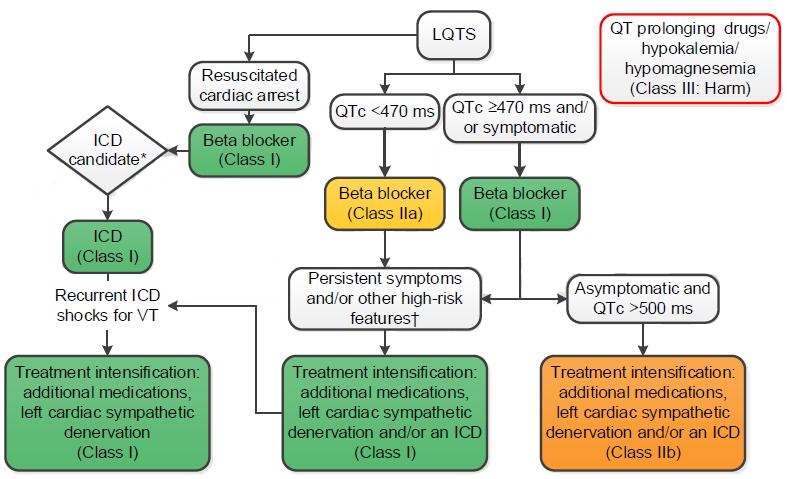 在这几十年对于LQTS的治疗过程中,β受体阻滞剂仍然是最有效的药物,但在LQT3综合征患者中,β受体阻滞剂治疗失败的病例时有报道。LQT3综合征患者的死亡率相比LQT1和LQT2型也更高,可能也与此有关。