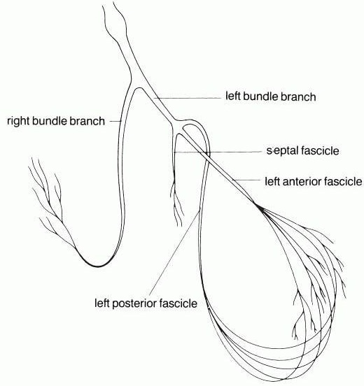 心脏的希氏束-浦肯野纤维系统的相对不应期是不甚一致的,一般右束支不应期均较左束支略长,左前分支不应期较左后分支略长,浦肯野纤维不应期较心室肌长,这使束支及分支之间的传导时间存在不同步现象。