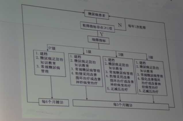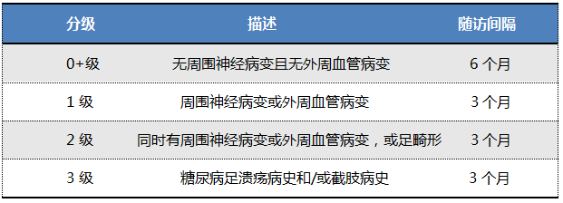 早期检查后,基于检查指标对患者足部情况进行分级并确定随访时间。