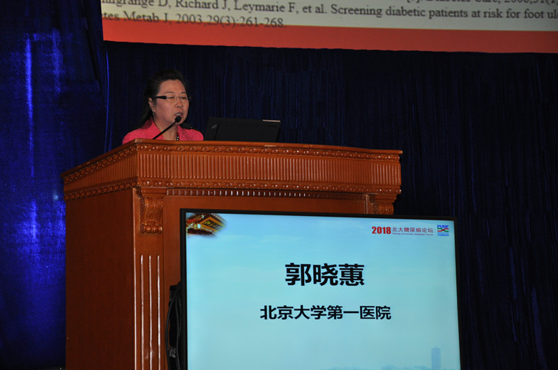 在5月6日上午举行的2018北大糖尿病论坛“糖尿病周围动脉病变和糖尿病足”专题讨论中,来自北京大学第一医院的郭晓蕙介绍了“糖尿病足的早期发现和预防”这一内容。