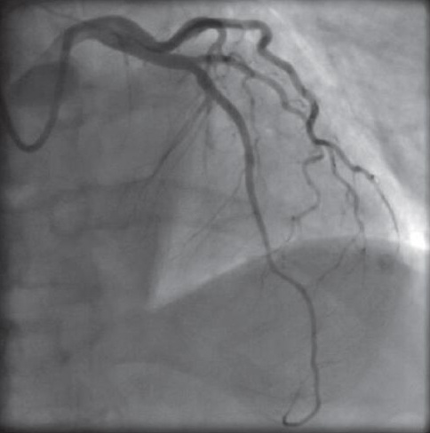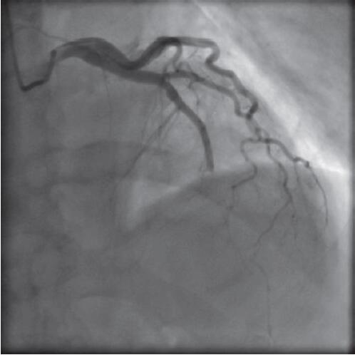 这就和预想的不一样了,说好的动脉粥样斑块破裂的,说好的冠脉狭窄的,这画风转变的有点突然啊!抽吸后前降支血流恢复至TIMI3级(图6),未见冠脉狭窄,患者胸痛症状缓解,未行支架植入术。