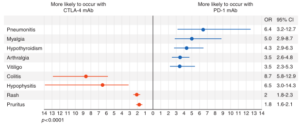 CTLA-4抑制剂和PD-1/PD-L1抑制剂毒性谱不同