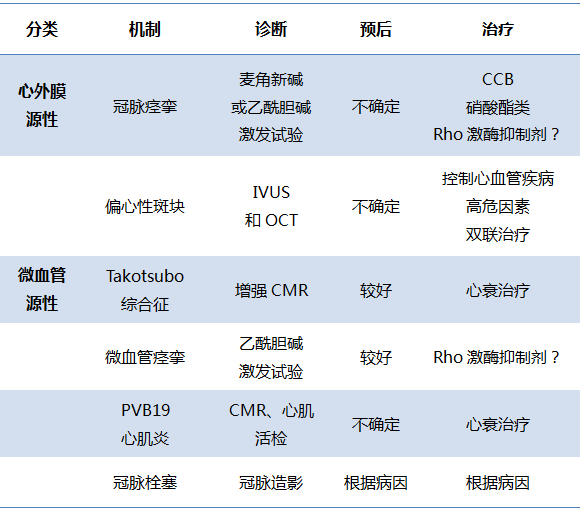 等。斑块破裂是MINOCA的常见原因。冠脉痉挛(CAS)是心外膜源MINOCA的主要病因。