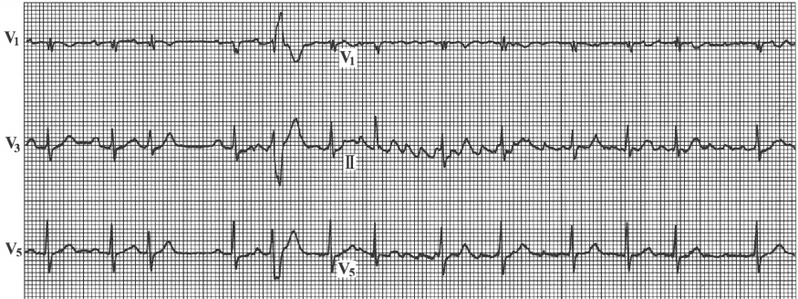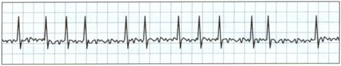 (2)QRS波群形态不一:QRS波群的波幅变化很大,彼此不等,但形态大致相同;QRS波群通常<120 ms,除非预先存在束支传导阻滞、旁路或差异性传导。