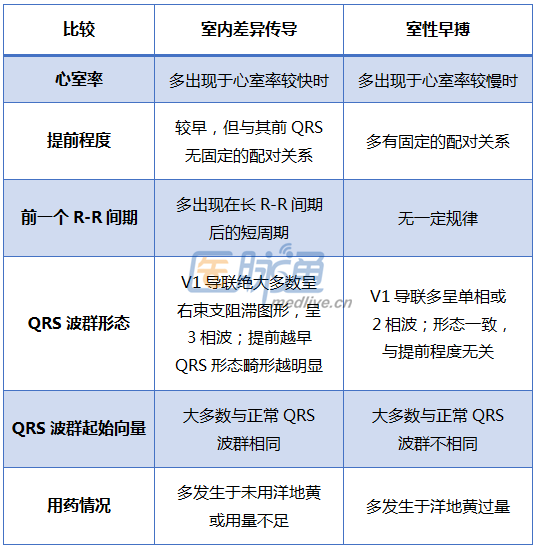 虽然很多专家学者总结了房颤伴差传与室性早搏的区别(表1),很多文献都提供了多种方法,但临床上二者鉴别仍旧是很难的。