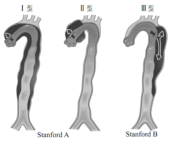 ▶ A型主动脉夹层是外科急诊,B型主动脉夹层应药物治疗,仅在出现破裂或终末器官损害时外科手术。