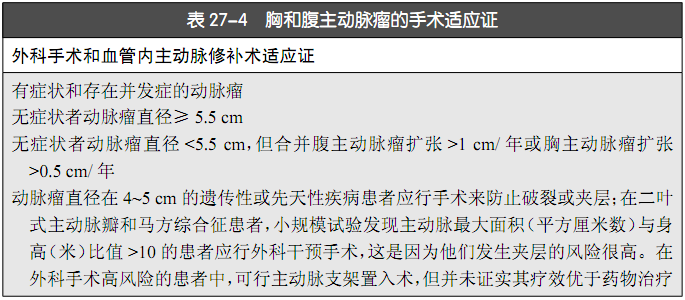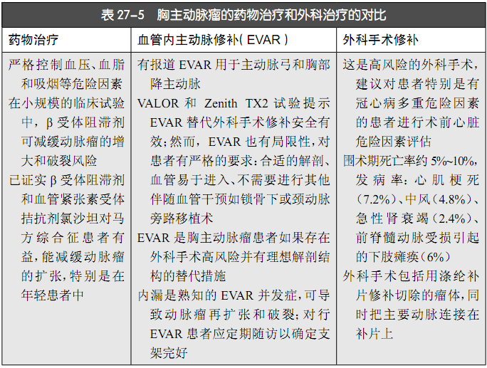 治疗:胸主动脉瘤的治疗详见表27-4和表27-5。