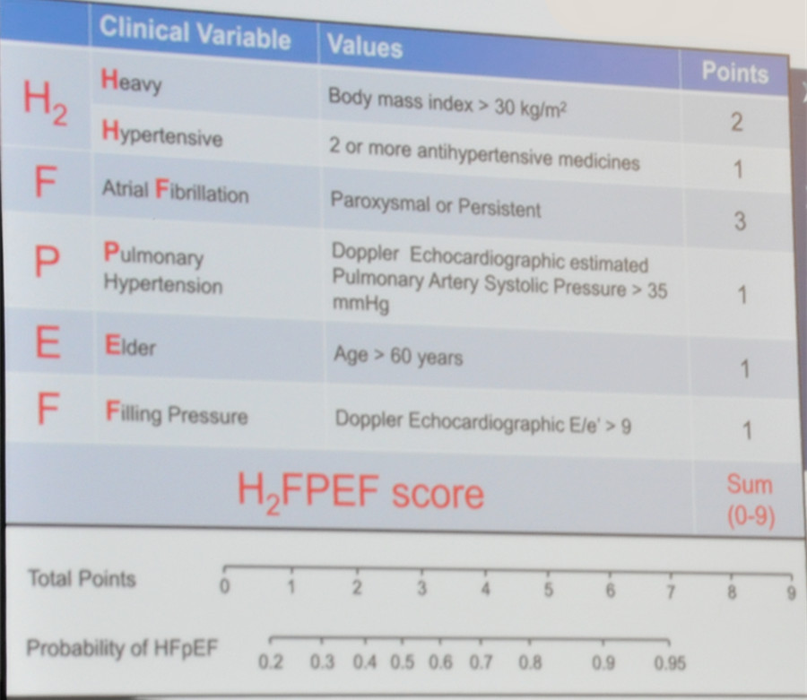 H2FPEF评分的出现有助于HFpEF诊断,如图2。H2FPEF评分为0-1时,可排除HFpEF;H2FPEF评分为2-5时,需要进行其他检测(负荷试验或RHC测压)来进一步明确;H2FPEF评分为6-9时,可明确HFpEF。