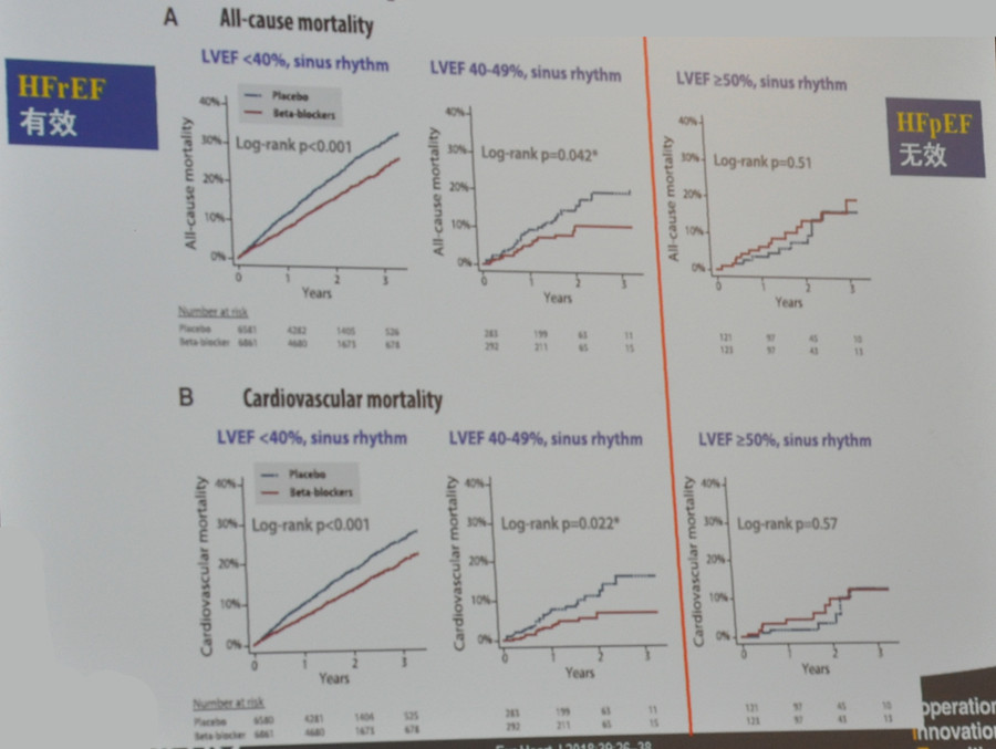 图5 β受体阻滞剂在HFrEF和HFpEF患者中的疗效