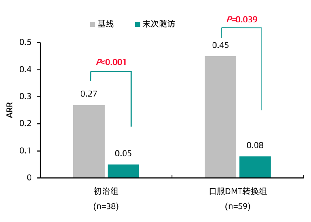 图1 初治组和口服DMT转换组患者ARR显著降低