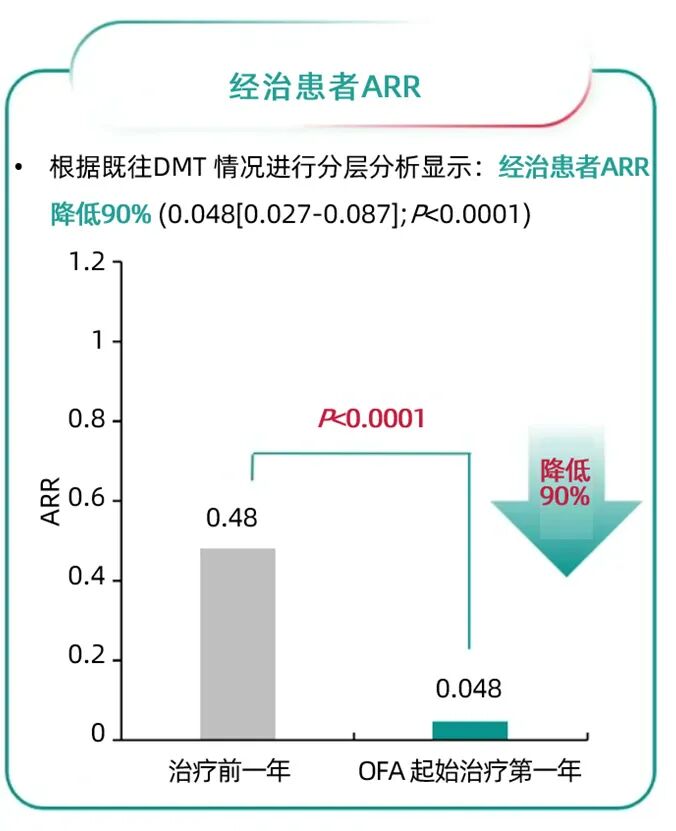 ➤ 奥法妥木单抗治疗2年,ARR由开始治疗的前1年的0.34显著降低为治疗期间的0.05(P<0.0001),优于关键三期研究的ARR降幅。