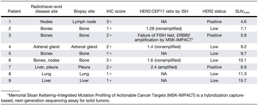 表2. 89Zr-曲妥珠单抗队列的活检部位、HER2病理学和SUVmax结果